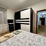 Apartmán Maxim Apartment, 1Km Fr nabízí kompletní kuchyni i pokoje s balkónem, pracovním stolem a TV s plochou obrazovkou se satelitními kanály. Mustafa-pašova mešita se nachází 2 km od tohoto ubytování.